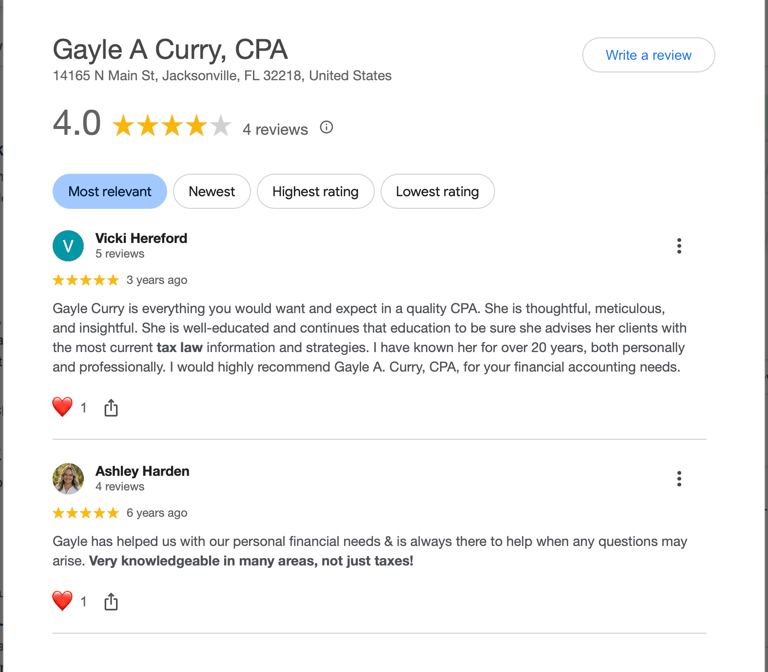 Gayle Curry CPA provides personalized accounting and tax services for individuals and businesses. We specialize in tax preparation, bookkeeping, small business setup, and payroll services, helping our clients stay compliant, organized, and financially confident. Our goal is to deliver reliable, professional support tailored to your unique financial needs so you can focus on growing your business and securing your financial future.